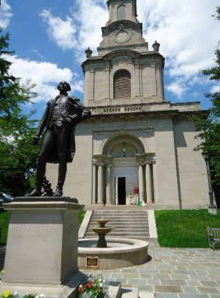Two statues of Marquis de La Fayette are presented in the Lafayette College established here in 1826.
